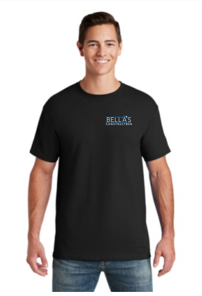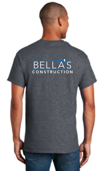 - 50/50 cotton/poly (Dark Heather, Safety Pink, Safety Green, Safety Orange, Heathered Cardinal, Heathered Indigo, Heathered Navy, Heathered Sapphire)