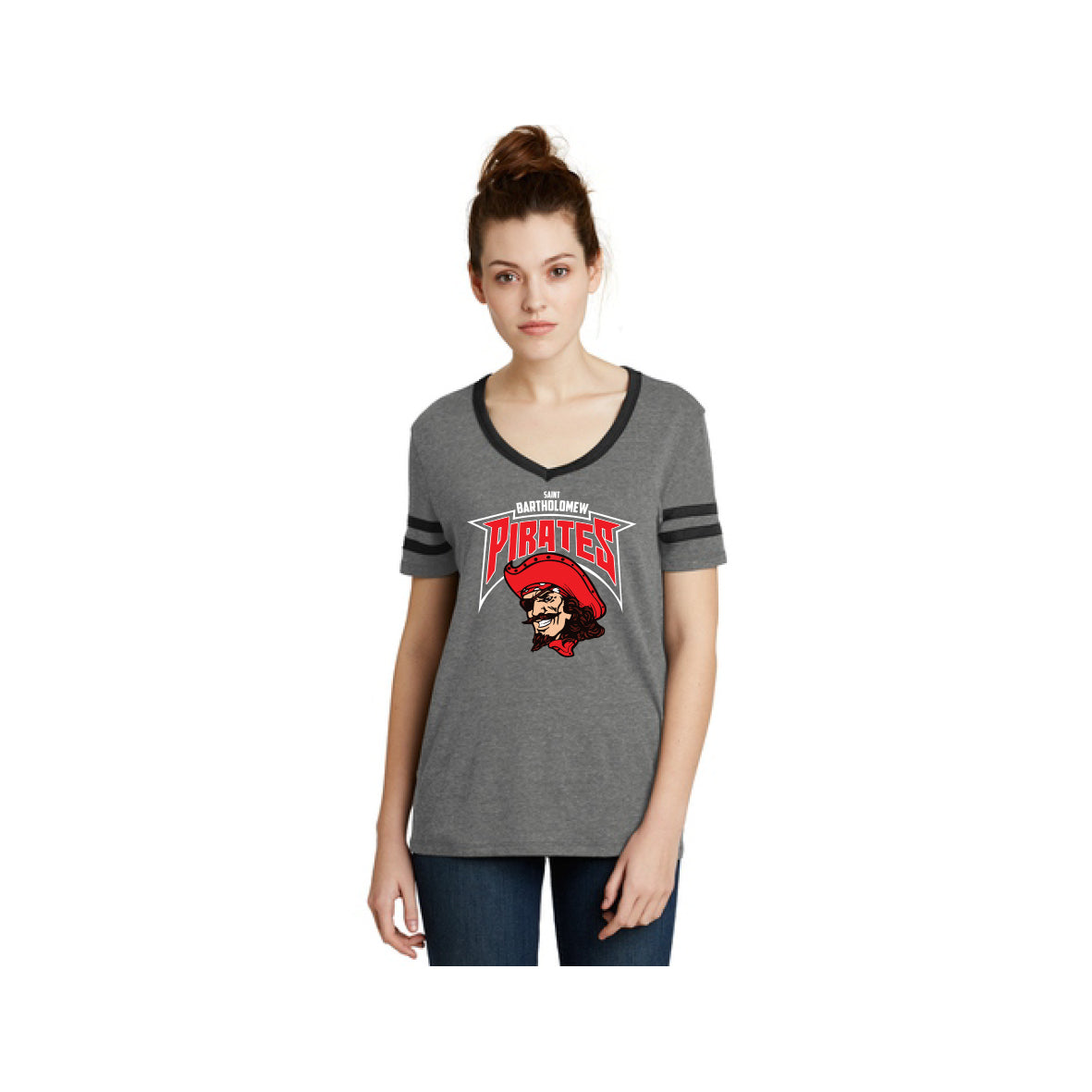 - Contrast stripes on sleeves